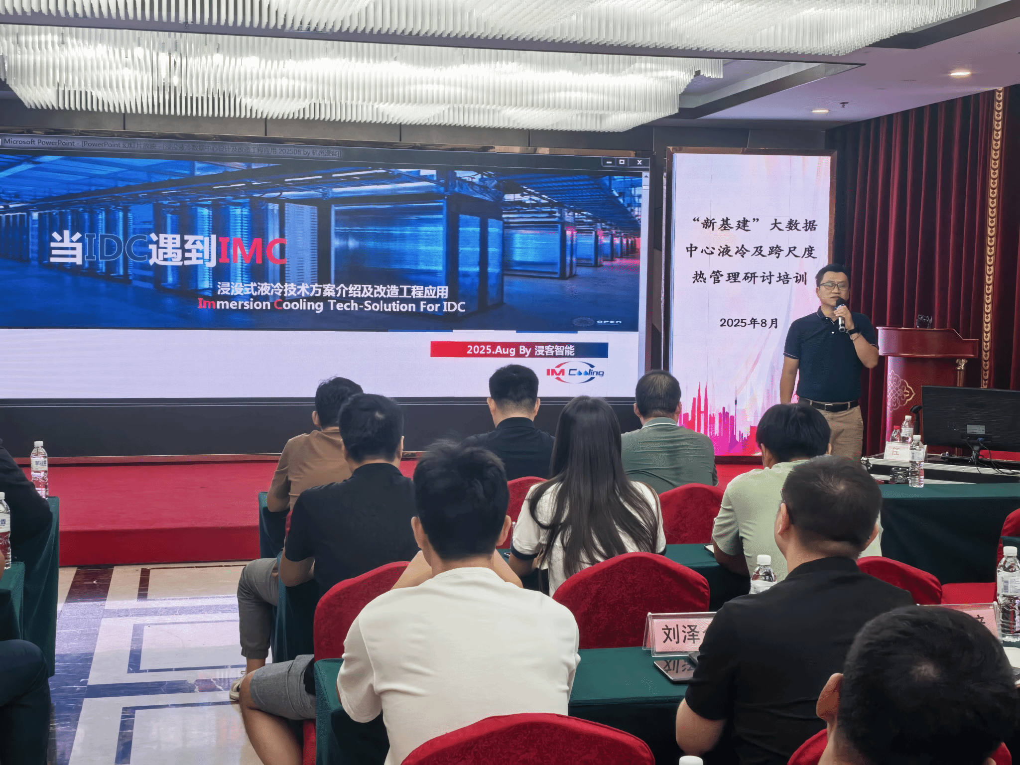 下午,王星皓技术总监以《数据中心服务器单相浸没式液冷技术及其工程应用》为主题展开讲授。他全面梳理了数据中心的发展现状与未来趋势,分析了冷却技术的最新进展,着重解读了单相浸没液冷技术的关键难点、系统构建方法以及实际应用成果,并对该技术的产业化前景作出展望,为学员提供了宝贵的行业洞见和技术参考。
