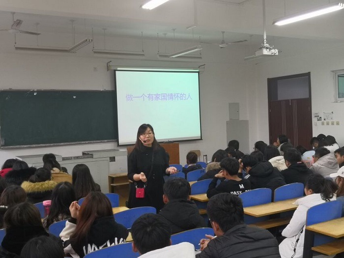 2018年11月29日下午16:00,在笃行楼b区205教室,经济管理学院2018级学生干部“让青春插上理想的翅膀”主题理想信念教育继续开讲,思政部金艳教授为学生们做了主题为“做一个什么样的人”的讲座,讲座由经管学院党总...